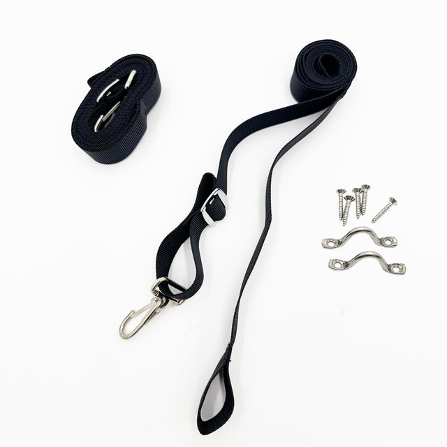 Premium Quality Straps: 2 pieces marine grade nylon webbing straps 1" wide; Durable adjustable straps with hooks. Adjustable 28" to 60" Bimini Top Tie Down Straps. One end closed loop for tube, the other end snap hook to connect with eye strap. Easy to install and remove; ensure Bimini Top is secure. Package includes straps, snap hooks and four screws. Best for holding Bimini Top tight and securing boat awning.