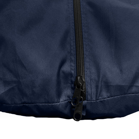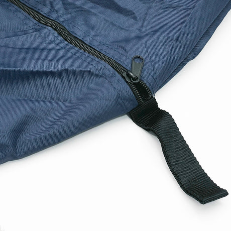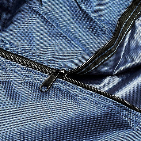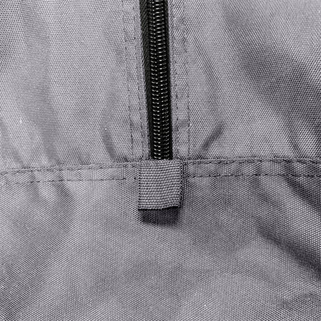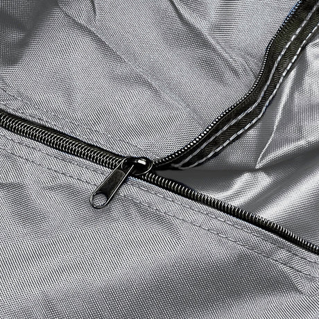 The front of the cover is marked with a sewn-in tag for easy identification. Place the cover gently over your PWC, but don’t secure it right away. SavvyCraft™ offers both semi-custom and custom-fit covers, and the installation process is the same for each. Begin by slipping the cover over the mirrors, then the handlebars, and gradually pull it down over the front of the craft. Work your way toward the back, ensuring the cover fits over the seat and around each rear corner. If the cover doesn’t fully reach, it means the size is too small for your watercraft—in that case, reach out to customer service for assistance.