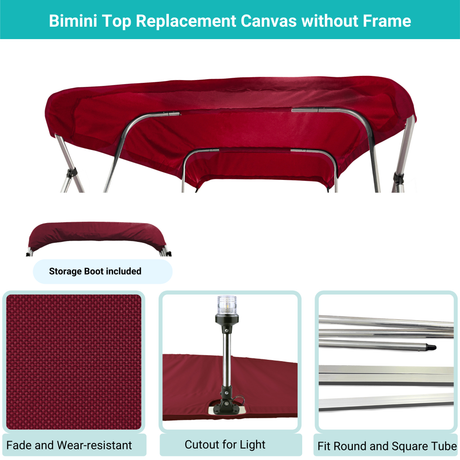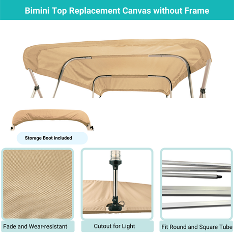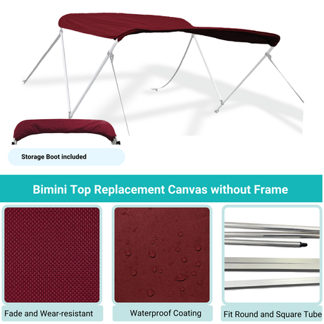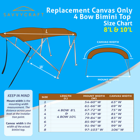 Savvycraft Waterproof 4 Bow Bimini Top Replacement Canvas-Zipper Sleeves 120" Long