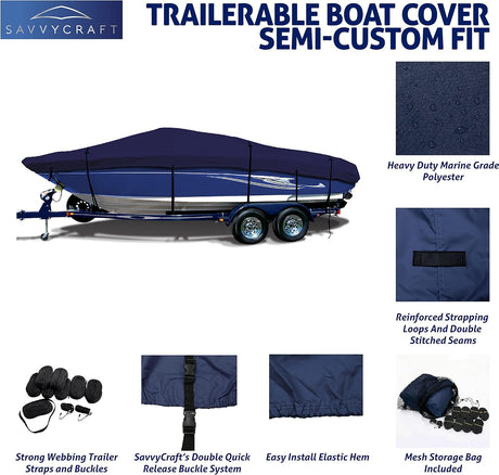 SavvyCraft® EliteShield Tri-Hull O/B Boat Cover
