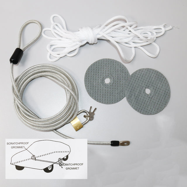 Compatible with most cars, trucks, SUVs, vans, and station wagons, the kit includes a durable security cable, a high-quality lock, and two matching keys. It’s easy to install, reliable, and ideal for both indoor and outdoor use—making it the perfect add-on for any car cover.