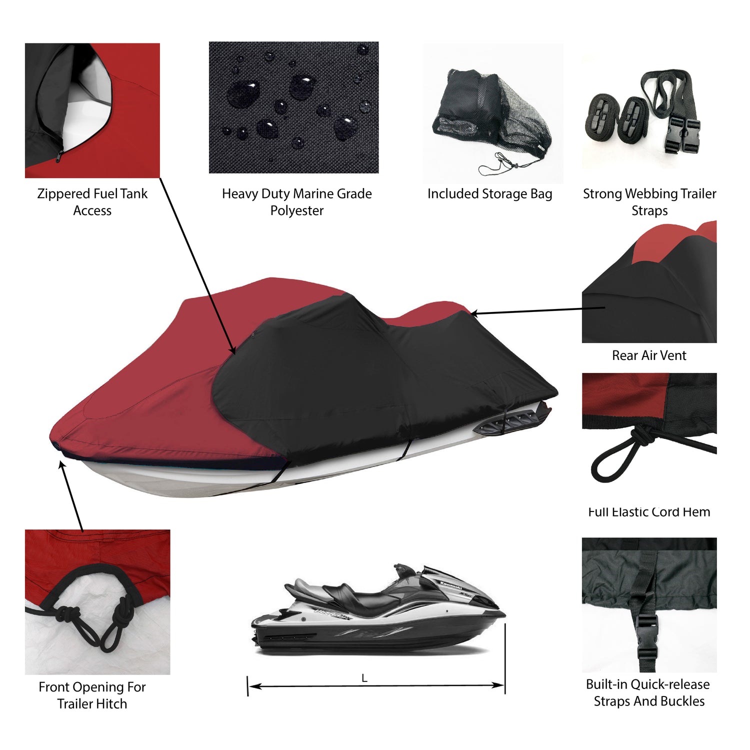 Absolutely. The cover includes an integrated trailering system with quick-adjust straps and side-release buckles. This ensures a snug, secure fit while transporting your jet ski, preventing wind lofting or shifting at high speeds.
