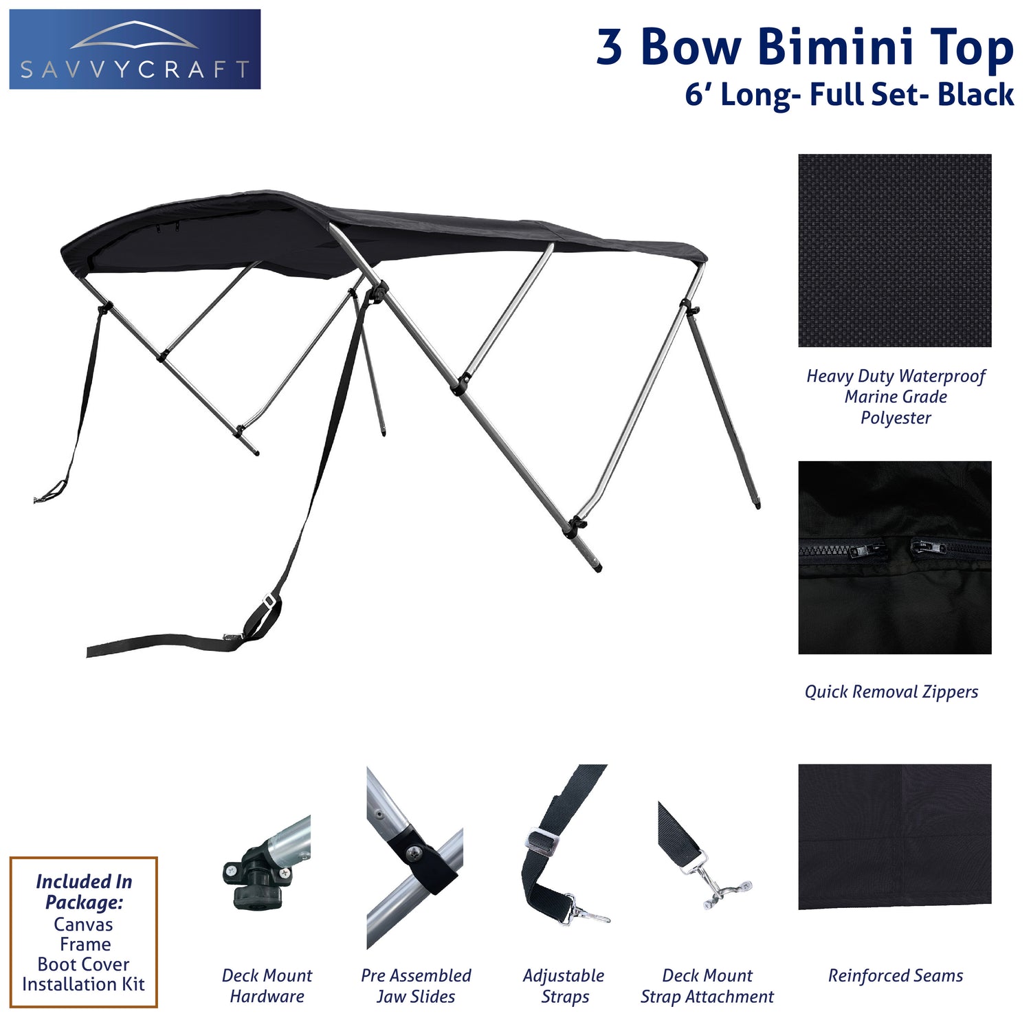 Savvycraft Waterproof 3 Bow Bimini Top Round Tube Full Set 72" Long 46" High - Black / 54"-60"W 46"H is backordered and will ship as soon as it is back in stock.