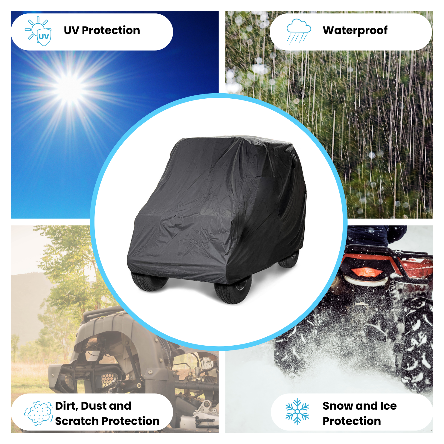 Keep your UTV safe and protected with the TitanShield UTV Cover. Designed to fit UTVs up to 108"L x 58"W x 36"H, this heavy-duty cover provides all-weather protection, ensuring your vehicle stays in top condition no matter the season. Whether you’re battling harsh sunlight, rainstorms, snow, or ice, the TitanShield cover is built to withstand it all.